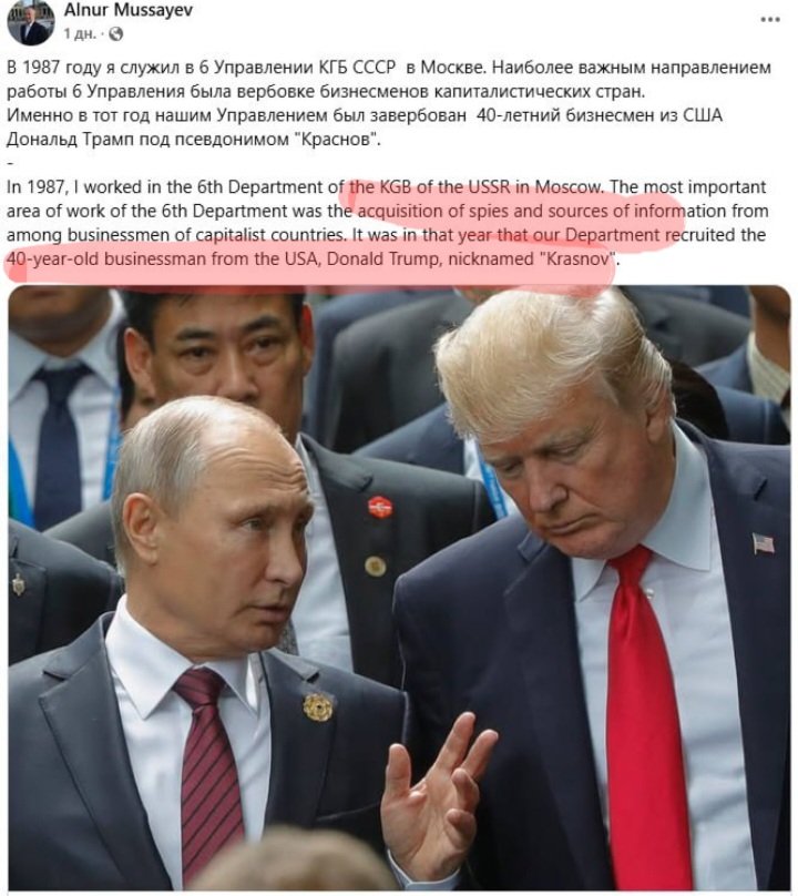 | blomblom @someone44 2025-08-18 Post: trumps name in his role as a russian spy is krasnov | | |