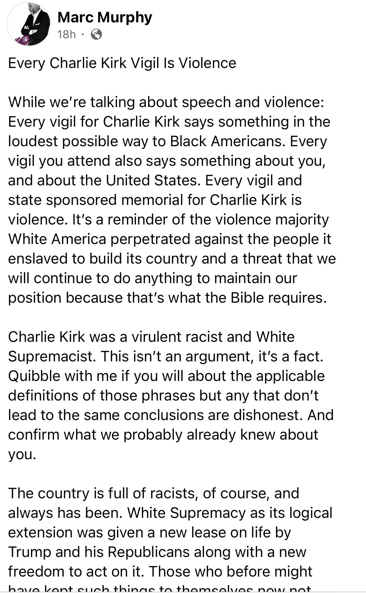 | blomblom @someone44 2025-09-19 Post: here is a professor who talks about how racist charlie kirk was | | |