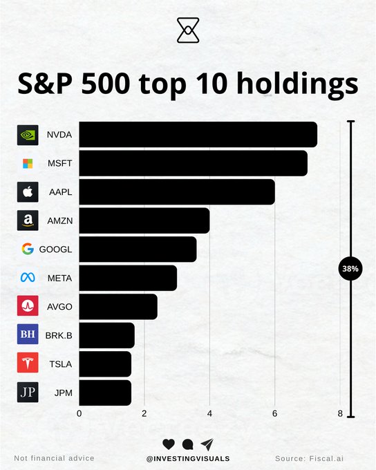 | blomblom @someone44 2025-10-09 Post: SPY top 10 holdings account for 38% of the total index right now.